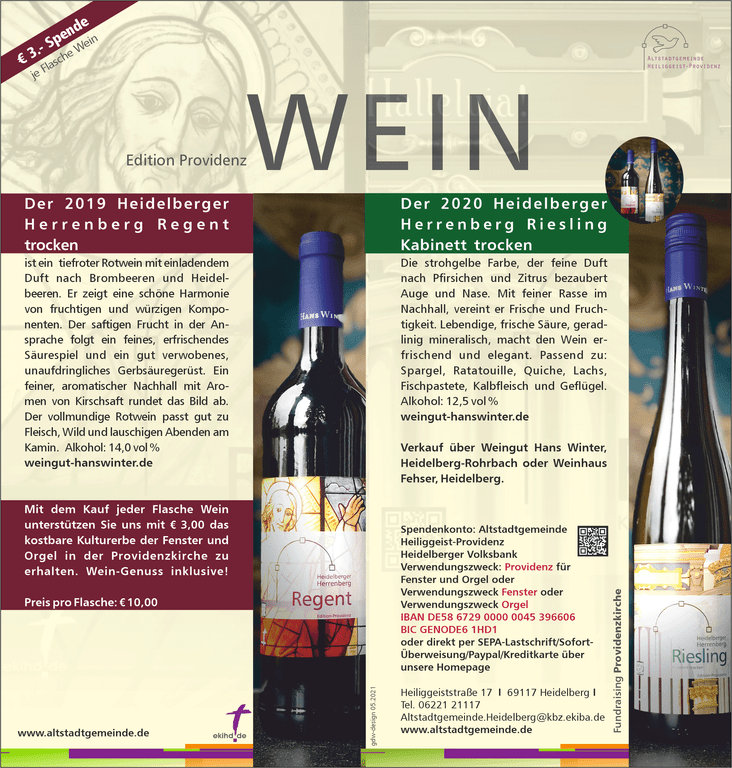 Kontoinhaber: Evangelische Kirche in Heidelb. - Volksbank Heidelberg-Neckartal - Verwendungszweck: Providenzkirche